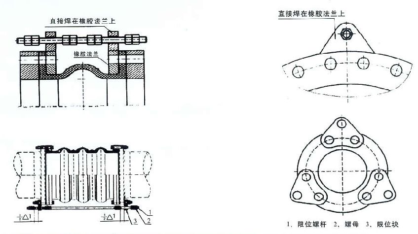 限位裝置與可曲撓橡膠接頭合理搭配使用,在管道—般連接中或在有位移要求的管線線路中使用時(shí),能起到限定位移量的作用.當(dāng)可曲撓橡膠接頭與泵、閥相連接使用時(shí),在可曲撓橡膠接頭上配用限位裝置,可起到傳力作用,是鋼制傳力接頭的理想替代產(chǎn)品。